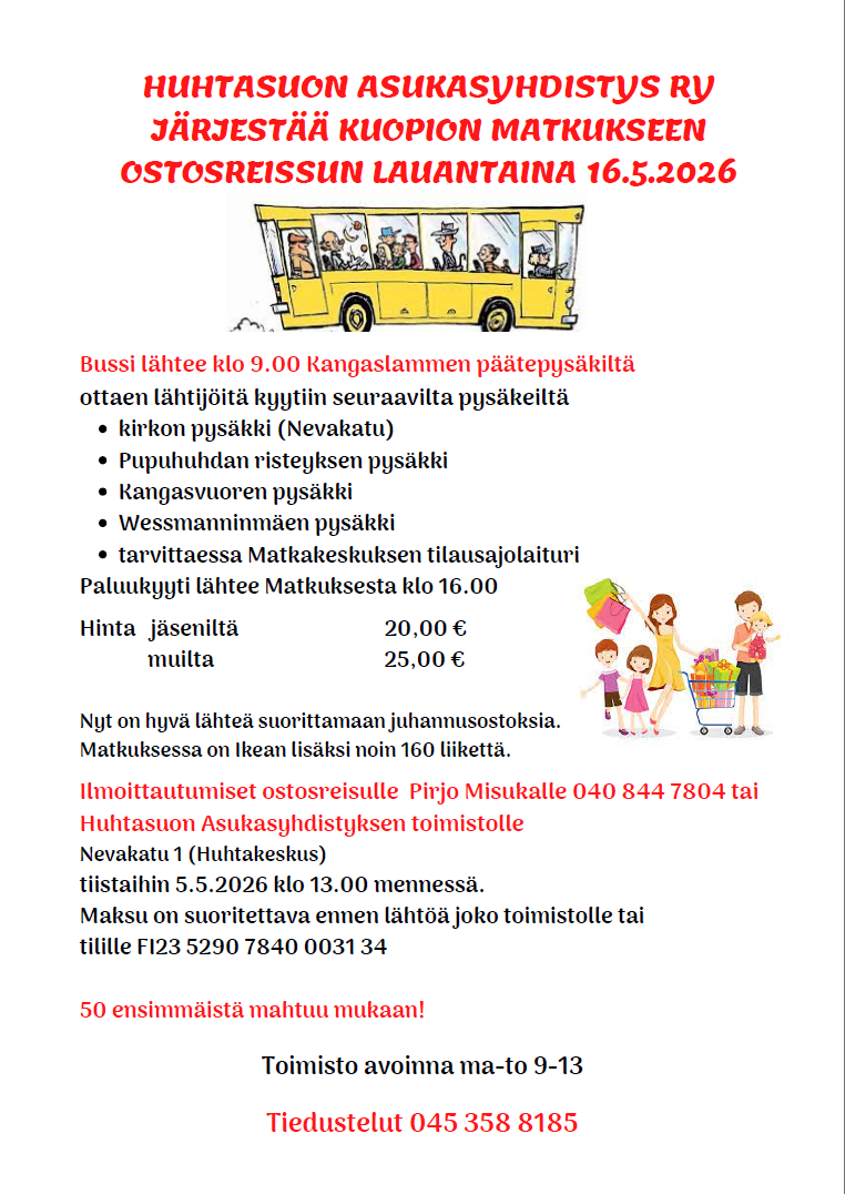 Tietoa Huhtasuon asioista löydät www.facebook.com/huhtasuo.